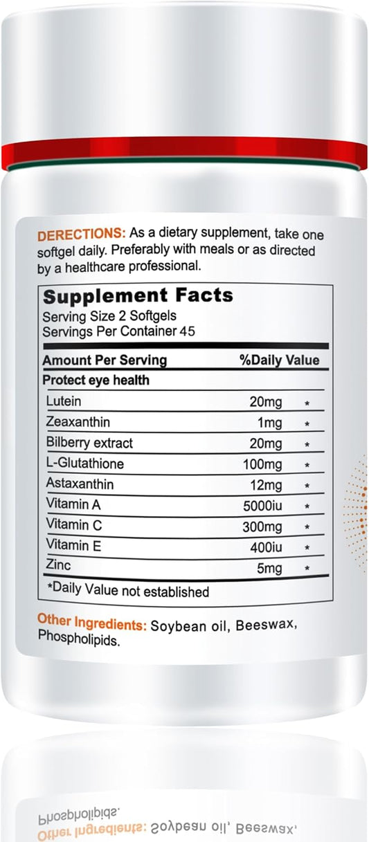 Eye Health Vitamins with Lutein & Zeaxanthin, Antioxidant-Rich Eye Supplements to Combat Blue Light & Eye Strain, 30 Softgels