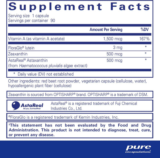 Hypoallergenic Dietary Supplement with Vitamin A, Lutein, Zeaxanthin, and Astaxanthin | 90 Capsules