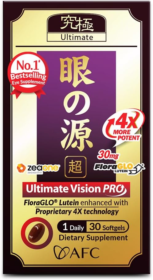 AFC Japan Ultimate Vision PRO - Eye Formula with FloraGLO Lutein 4X, Zeaxanthin, Bilberry Extract & Astaxanthin for Age-Related Eye Issues, 90 Capsules