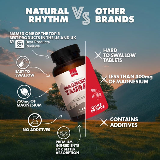 High Absorption Natural Rhythm Magnesium Taurate Capsules - 750mg (150mg Magnesium) - 120 Count
