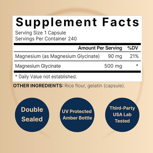 High Strength Magnesium Supplement - 500 mg Oxide & 425 mg Glycinate Blend for Optimal Absorption and Wellness