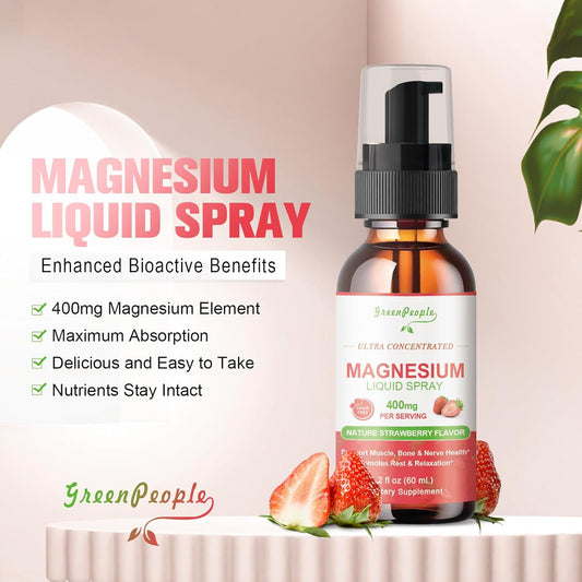 Magnesium Glycinate Liquid Spray 400mg with Potassium, Vitamin D3k2, B6 - Muscle, Bone & Sleep Support Formula by GREENPEOPLE 4 Fl Oz