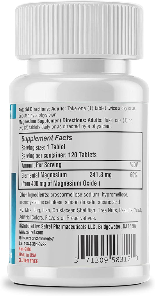 High Potency Safrel Magnesium Oxide Supplement for Immune Support, Muscle Recovery, Leg Cramps, Relaxation - 120 Tablets