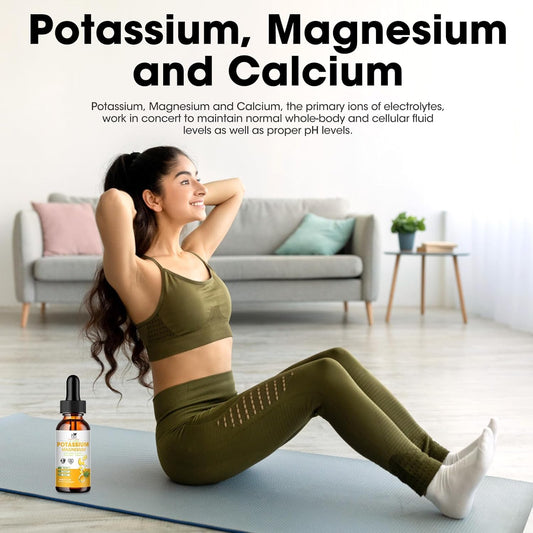 Potassium Magnesium Liquid Supplement with Calcium, Vitamin D3, Zinc - Vegan & Sugar Free - 2 FL OZ