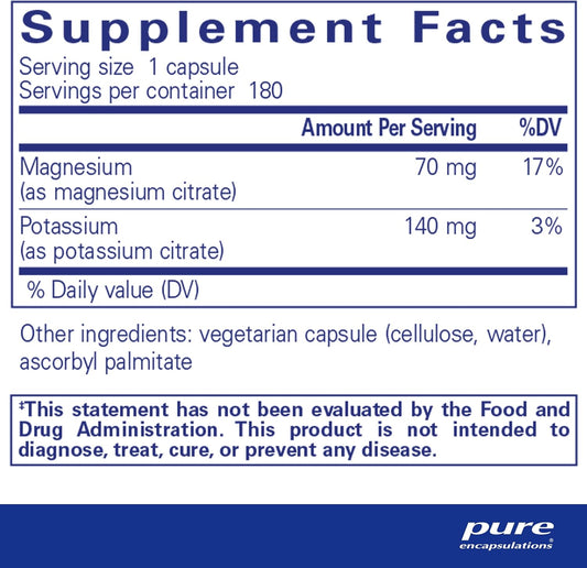 Potassium Magnesium Citrate Capsules for Heart Health and Bone Strength - Optimal Absorption - 180 Count - Gluten Free & Non-GMO