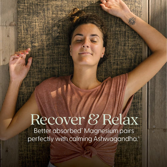 Magnesium Ashwagandha Supplement with Glycinate for Muscle Recovery, Heart & Bone Health - Gluten Free, Non-GMO - 60 ct