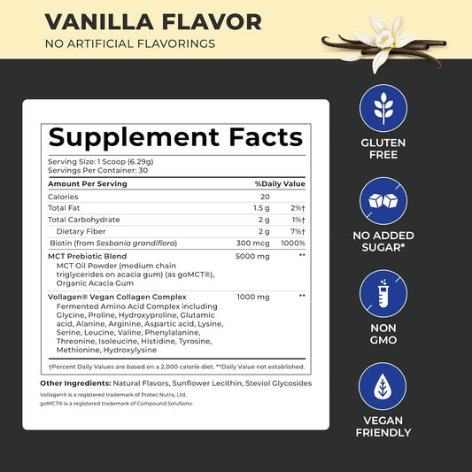 Vanilla Flavored POWERLIFE Power Life® Peak MCT Powder with Plant-Based Collagen & Biotin - 30 Servings