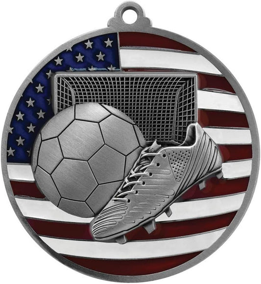 Soccer Patriotic Engraved Medal with American Flag Ribbon - 2.75 Inch Wide Futbol Medallion