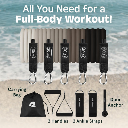 5pc Retrospec Train Resistance Bands Set with Handles, Door Anchor, Carry Bag - Ideal for Women and Men Workouts