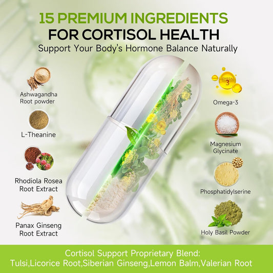 15-in-1 Hormone Balance Supplement with Cortisol Support, Magnesium Glycinate, Ashwagandha - 60 Capsules for Mood, Focus, Sleep Support in Men and Women