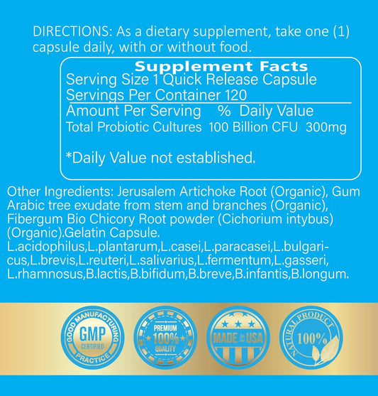 100 Billion Advanced Probiotic with 16 Strains and Prebiotics for Digestive Health - Supports Gut Health and Occasional Digestive Issues - Probiotics for Men and Women - 120ct