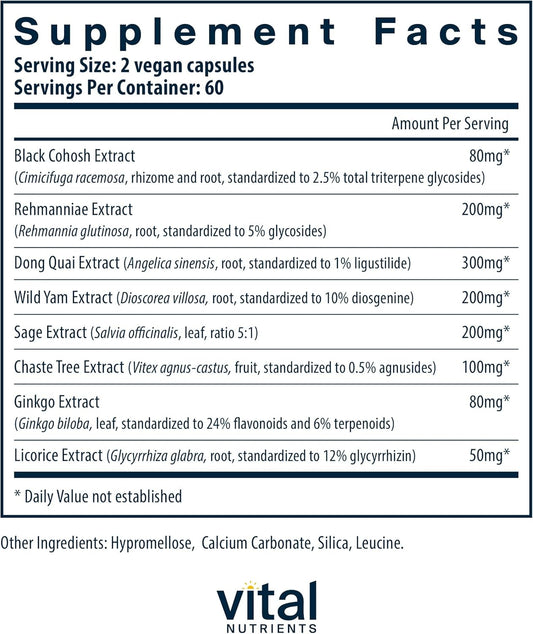 Herbal Menopause Support Supplement for Women | Hormone Balance Complex with Black Cohosh & Vitex | Vegan & Gluten-Free | 120 Capsules