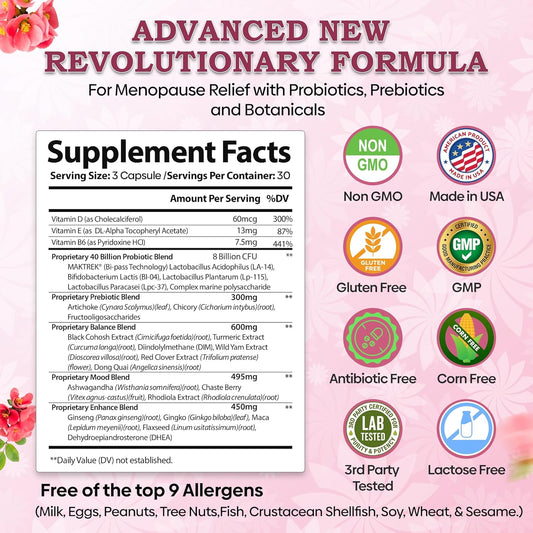 Menopause Probiotic Supplements for Women - 40 Billion CFU with DIM, Black Cohosh, and Dong Quai - Hormone Balance, Hot Flashes Relief - 30 Servings