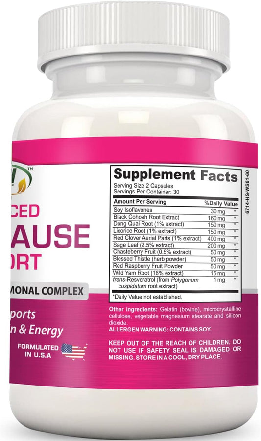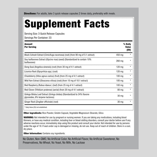 Menopause Relief Supplement for Women | 100 Capsules | Advanced Complex with Black Cohosh, Red Clover, Chasteberry | Non-GMO, Gluten Free
