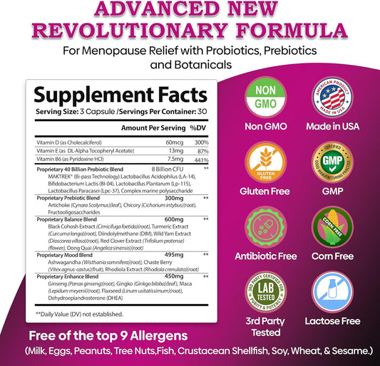 Menopause Support Supplement with Probiotics for Hot Flashes, Night Sweats, Hormone Balance, Mood Swings - 40Bn CFU