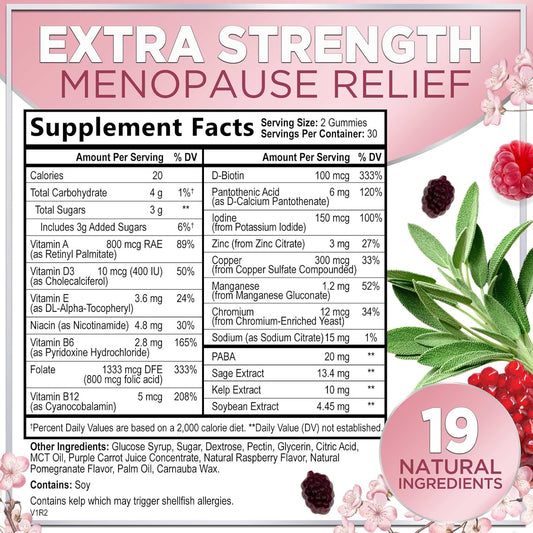 Menopause Relief Vitamin Gummies for Women - Natural Menopause Support for Hot Flashes, Night Sweats, and Energy - Non-GMO & Gluten Free - 60 Gummies