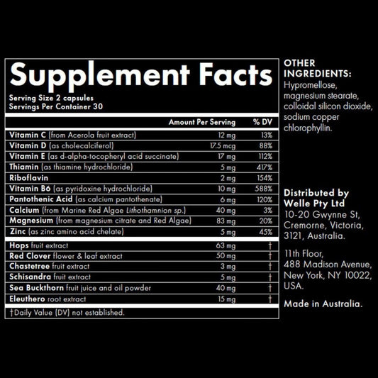 Menopause Supplement for Women | Hormone Balance Support with Vitex, B Vitamins, Red Clover | Helps Night Sweats, Hot Flashes | 60 Capsules | WelleCo The Goddess Elixir