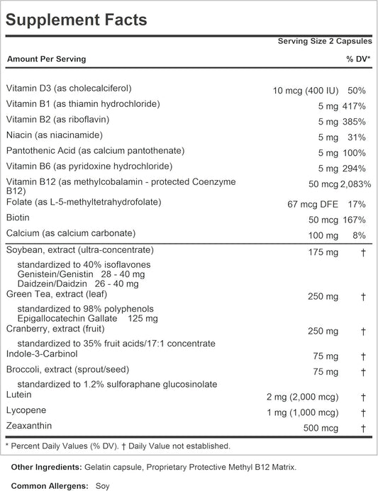Women's Wellness Capsules - Natural Relief for Menopause, PMS, Perimenopause with Soy Isoflavones, EGCG, Cranberry, Indole-3-Carbinol
