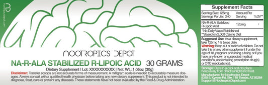 30g Nootropics Depot NA-R-ALA Powder | Supports Mitochondrial Activity | Healthy Metabolism Boost