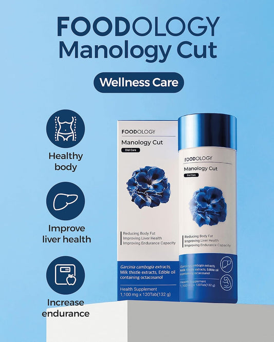 FOODOLOGY Manology Cut - Body Balance, Endurance & Liver Health Support (1-120 Tablets, 60 Servings) with Garcinia Cambogia, Milk Thistle, Octacosanol