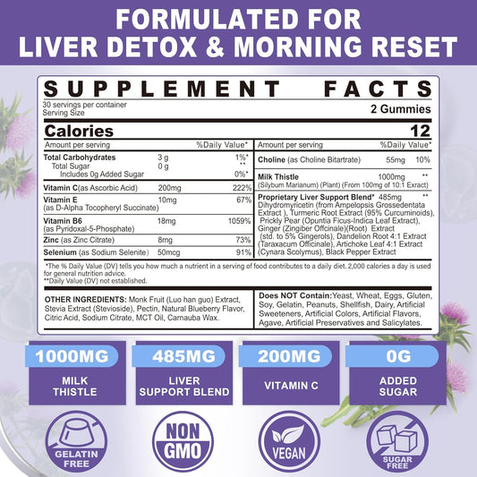 Liver Cleanse Detox Gummies with Milk Thistle 1000mg - Herbal Liver Supplement for Men & Women, Vegan, 120 Count