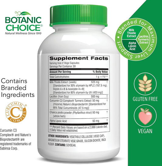 Premium Liver Health Support Supplement with Milk Thistle Extract, Lecithin, Curcumin - Botanic Choice Liver 10 Complex - 60 Pills