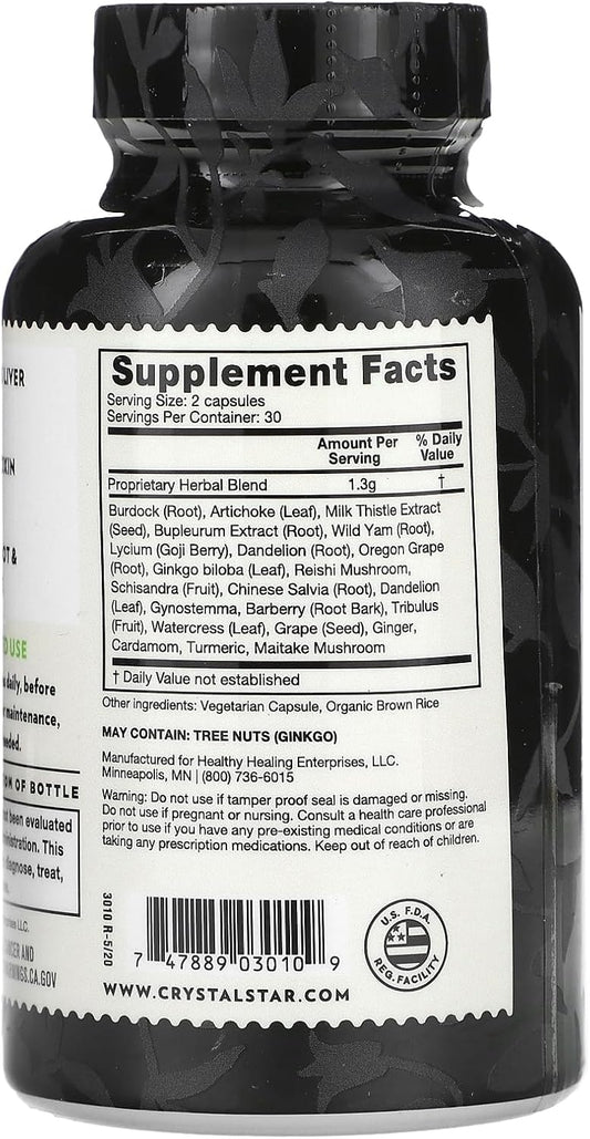Herbal Liver Cleanse Supplement - Crystal Star Liver Renew Capsules with Milk Thistle for Normal Liver Function & Toxin Release, Non-GMO - 60 Count