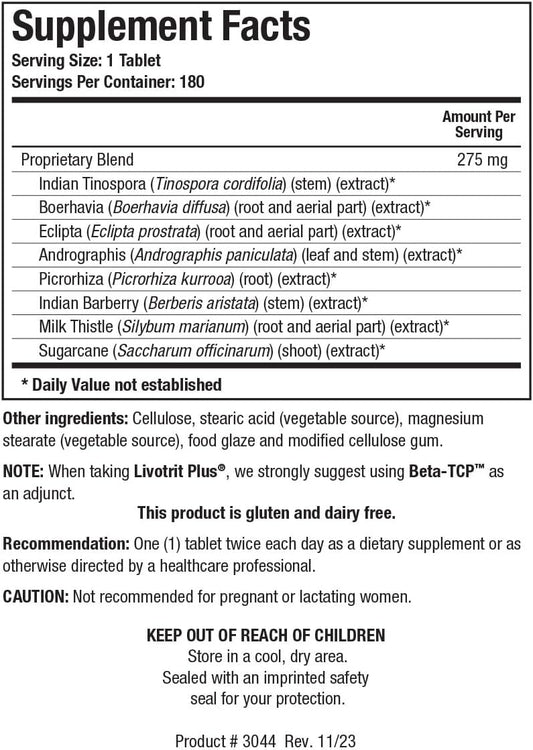 Natural Liver Cleanse & Detox Support Supplement with Milk Thistle - Biotics Research Livotrit Plus 180 Tablet