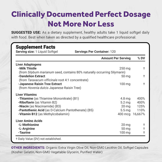 Premium Liver Support Supplement with Naturalis Silymarin Milk Thistle 1300mg, B Complex, Amino Acids - 13-in-1 Liver Cleanse, Detox, Repair - 120 Softgels