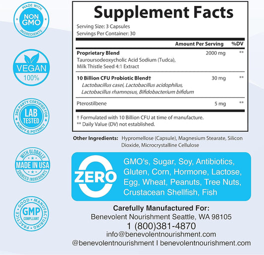 Benevolent Nourishment TUDCA Bile Salts Supplement 2000mg Complex | Supports Liver, Gallbladder, Gut & Kidney Health | Milk Thistle + Probiotics for Absorption | 90 Non-GMO V Capsules