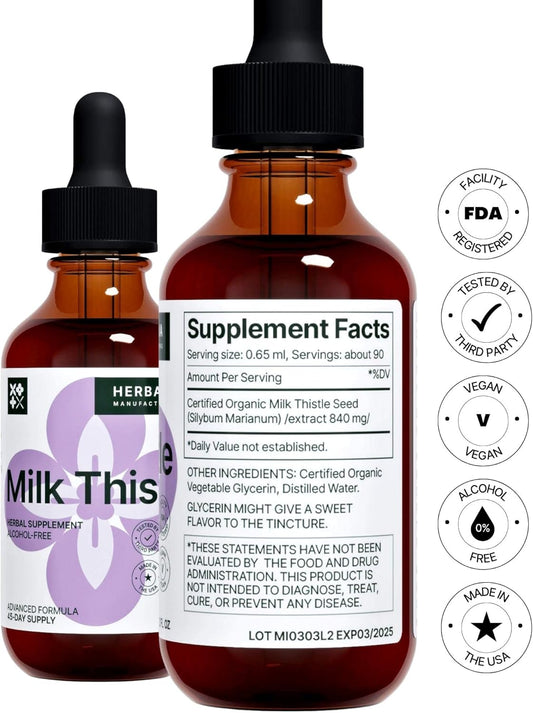 Herbana Manufacturing Milk Thistle Liquid Extract - Liver Support Drops - Cleanse & Detox Supplement - Silybum Marianum Tincture - High Potency - 45-Day Supply - Family Size