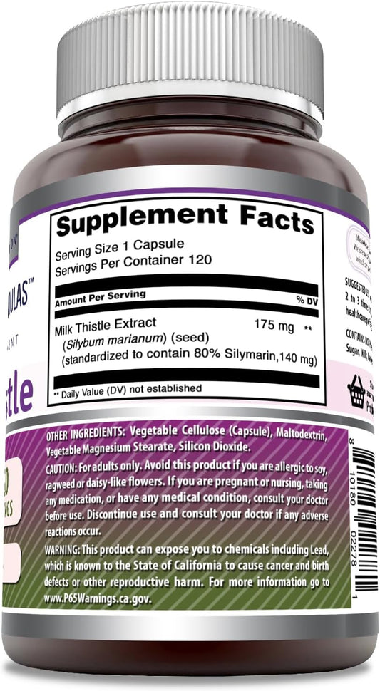 High-Quality Milk Thistle 175mg Capsules Supplement | Non-GMO & Gluten Free | Made in USA | 120 Count