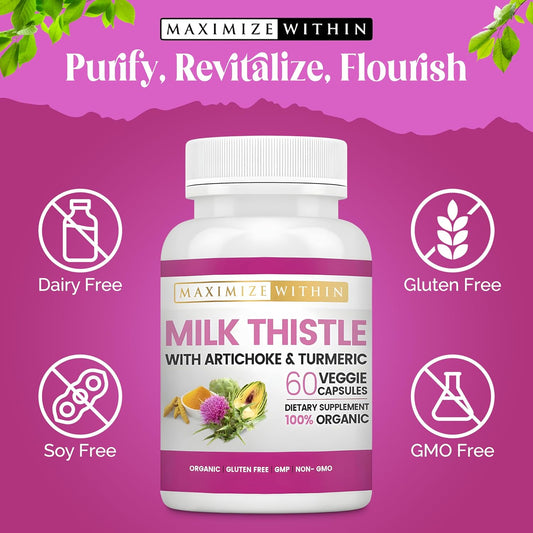 Organic European Milk Thistle Extract Capsules - Supports Liver Health & Natural Energy - 60 Veg Caps (60-Day Supply)