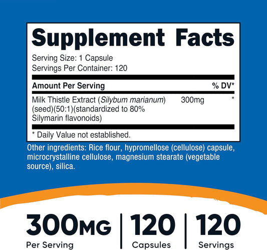 Nutricost Milk Thistle Capsules 300mg - 120 Capsules (80% Silymarin) - Gluten-Free & Non-GMO - Premium Liver Support Supplement