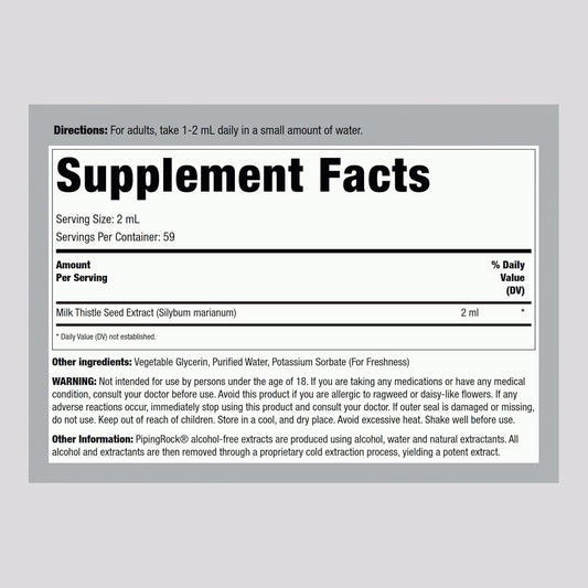Piping Rock Milk Thistle Seed Liquid Extract Drops - 4 Fl Oz, Alcohol-Free, Vegetarian Tincture - Non GMO, Gluten-Free