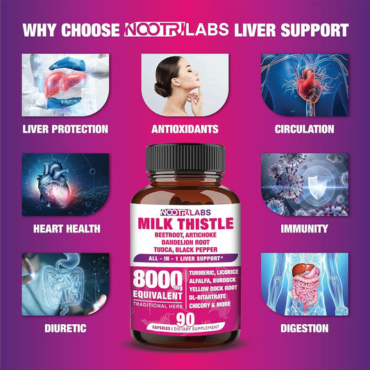 8000mg All-in-1 Liver Support Capsules with Milk Thistle, NAC, BeetRoot, Dandelion Root, Antioxidants, TUDCA, Choline, & Ginger - 90 Vegan Capsules