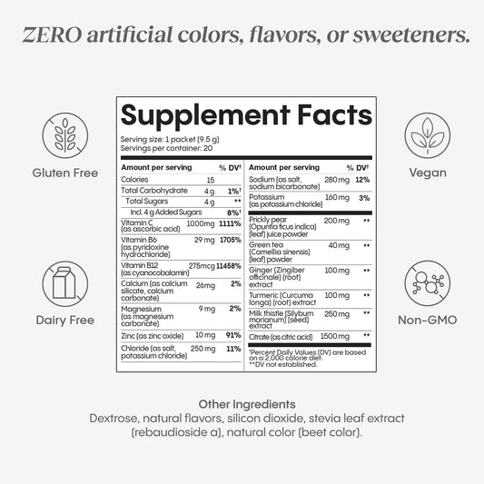 Hydralyte Liver Support Electrolyte Mix with Milk Thistle, Turmeric, Prickly Pear, Green Tea Extract for Rapid Rehydration - Blood Orange Ginger, 20 Packets