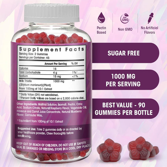 Sugar-Free Flamingo Supplements Milk Thistle Gummies 1000mg Extract - Liver Cleanse Support - Delicious Alternative to Capsules or Tea - 90 Count