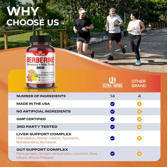 Berberine with Cinnamon, Milk Thistle Capsules - Promotes Liver Function, Gut Health, Immunity - USA Made & Tested - 150 Count