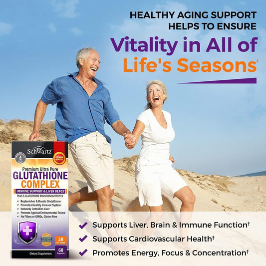 BioSchwartz Liver Detox Supplement with Glutathione, Quercetin, Vitamin C, Milk Thistle, Alpha Lipoic Acid - Immune Support & Cleanse Formula - 500mg, 60ct