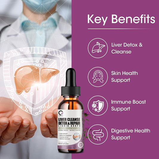 Liver Cleanse Detox Liquid Drops 2 Pack with Milk Thistle, Artichoke Extract - Liver Supplement for Detox, Repair, Antioxidant, Vegan - 4 Fl Oz