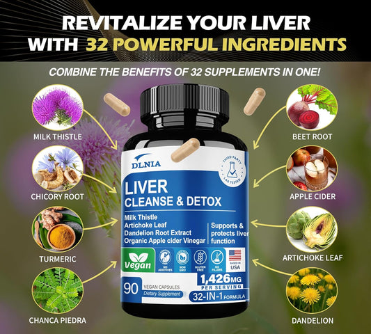 Liver Cleanse & Detox Supplement with Milk Thistle, Artichoke, Dandelion, Turmeric - Liver Support for Detox and Health