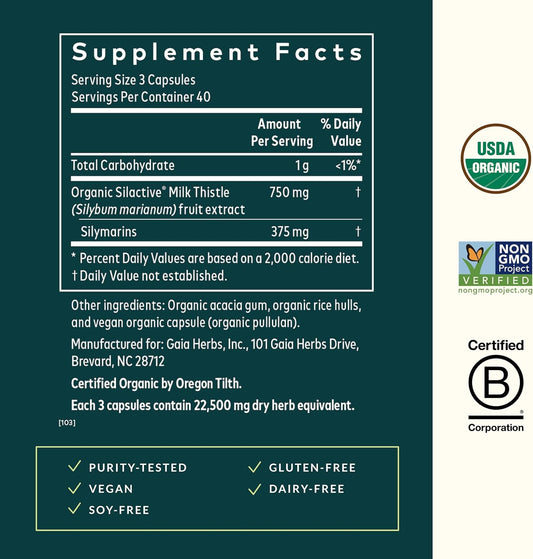 Gaia Herbs Milk Thistle Capsules - Vegan Liver Support Supplement for Healthy Liver Function - 120 Capsules