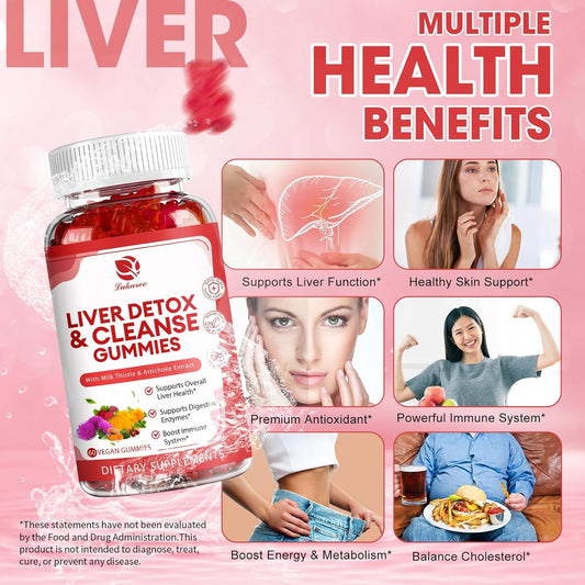 Liver Cleanse Detox Gummies with 24 Powerful Herbs including Milk Thistle, Dandelion, Artichoke Extract, and Elderberry - 120 Count - Raspberry Flavor - No Added Sugar