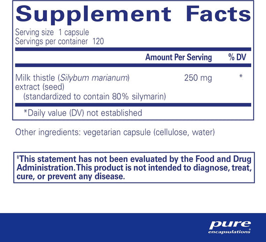 Silymarin 250mg Milk Thistle Capsules - Liver Health Support - Antioxidant Supplement - Non-GMO & Vegan - 120 Capsules