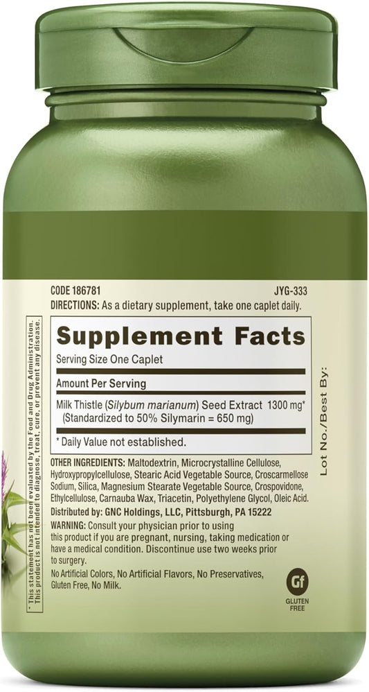 Vegetarian GNC Herbal Plus Milk Thistle 1300mg Supplement for Healthy Liver Function - 120 Count