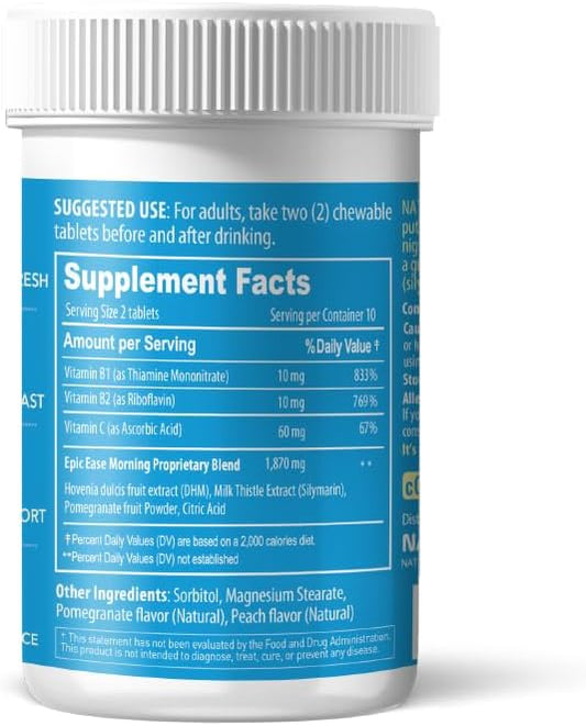 Liver Detox & Repair Supplement with DHM, Milk Thistle, Vitamin C, B1, B2 & Pomegranate - 20 Chewable Tablets for Morning Recovery - Natural Pomegranate & Peach Flavor