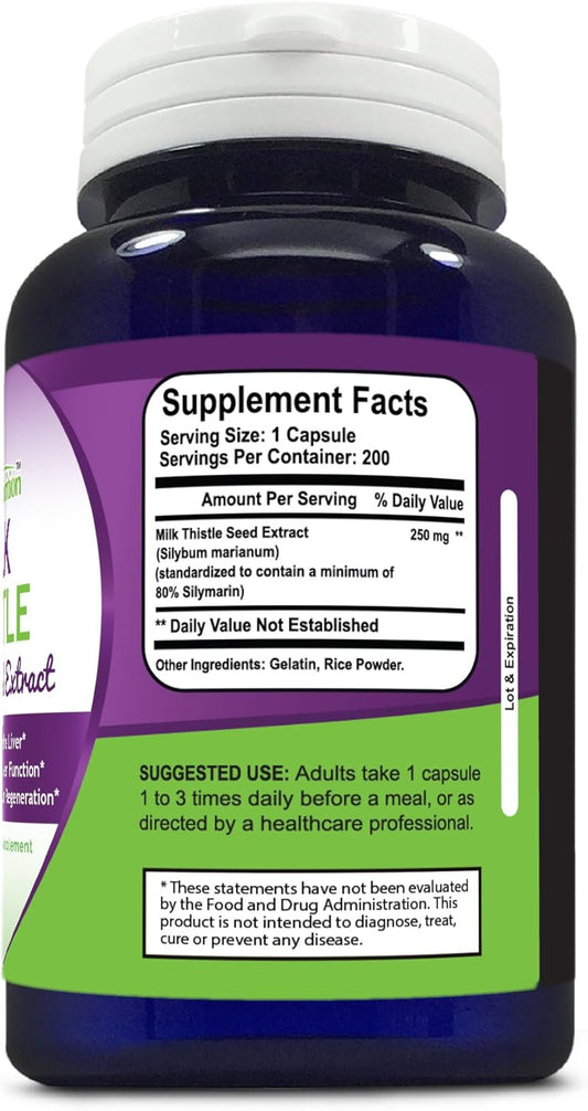 Sonora Nutrition Milk Thistle Extract 250mg - 200 Capsules, Standardized with 80% Silymarin
