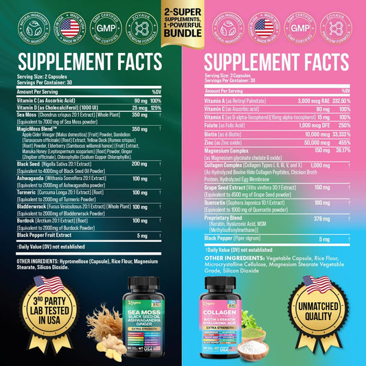 Zoyava Radiant Wellness Bundle with Sea Moss, Black Seed Oil, Ashwagandha, Turmeric, and More