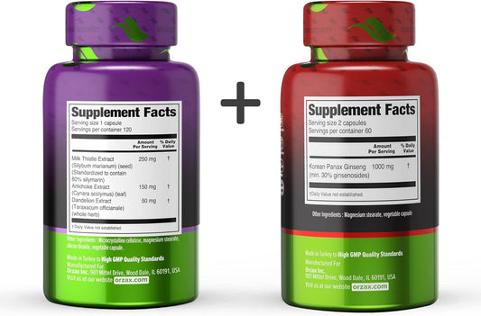 Bundle of ORZAX Milk Thistle Plus and Premium Ginseng Capsules - 240 Vegetarian Capsules in Total